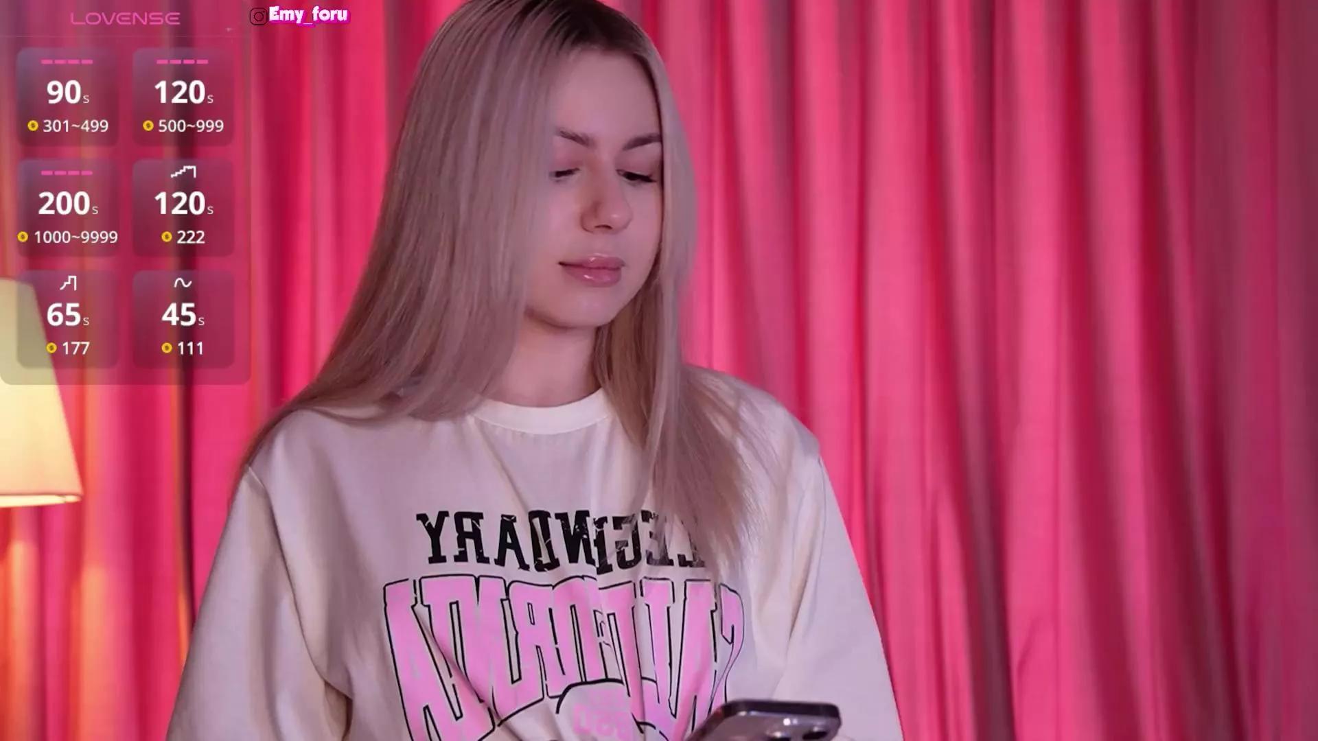 Join the sweet stripper Emilyloveee from Cam4 she loves masturbating webcam while being gazed on